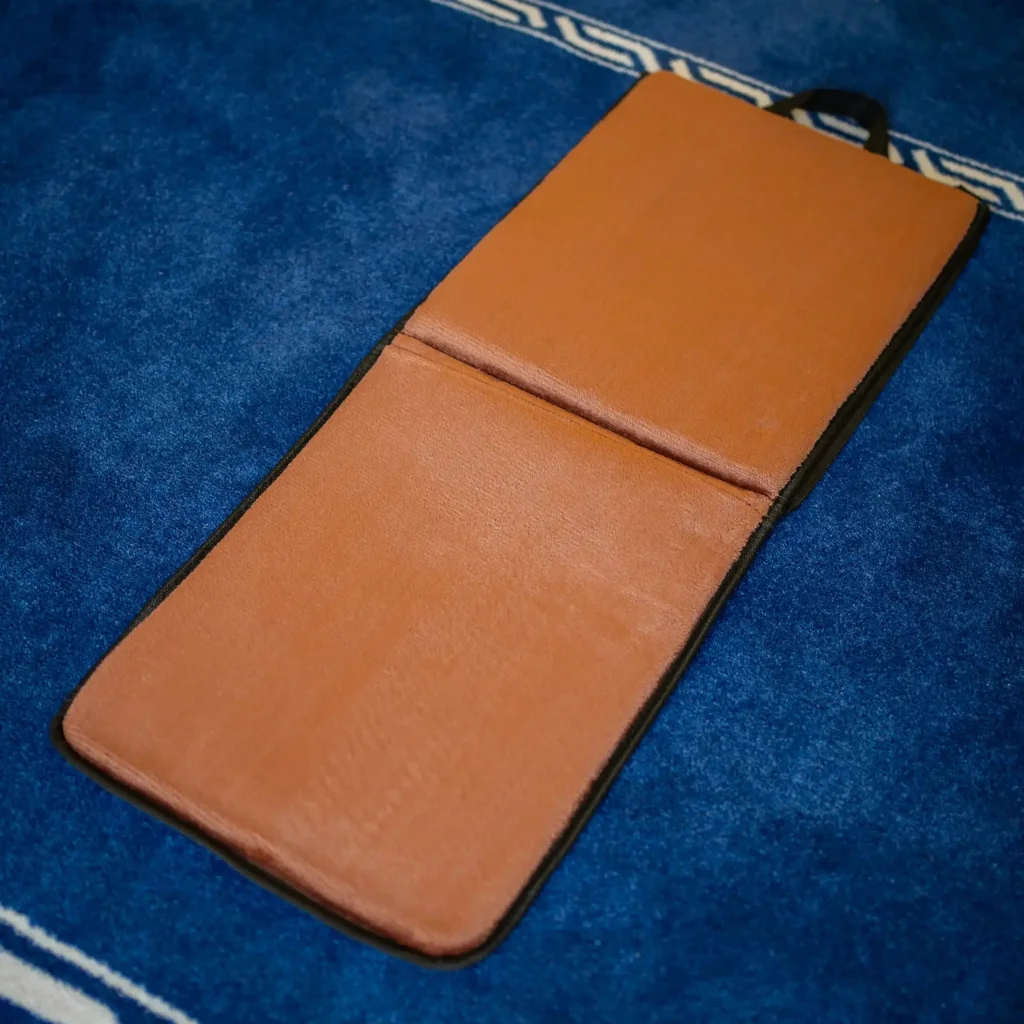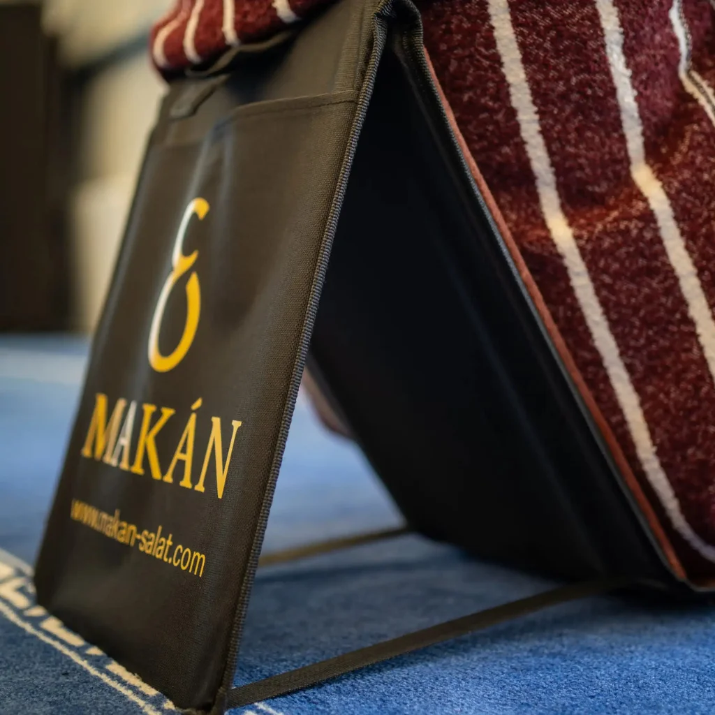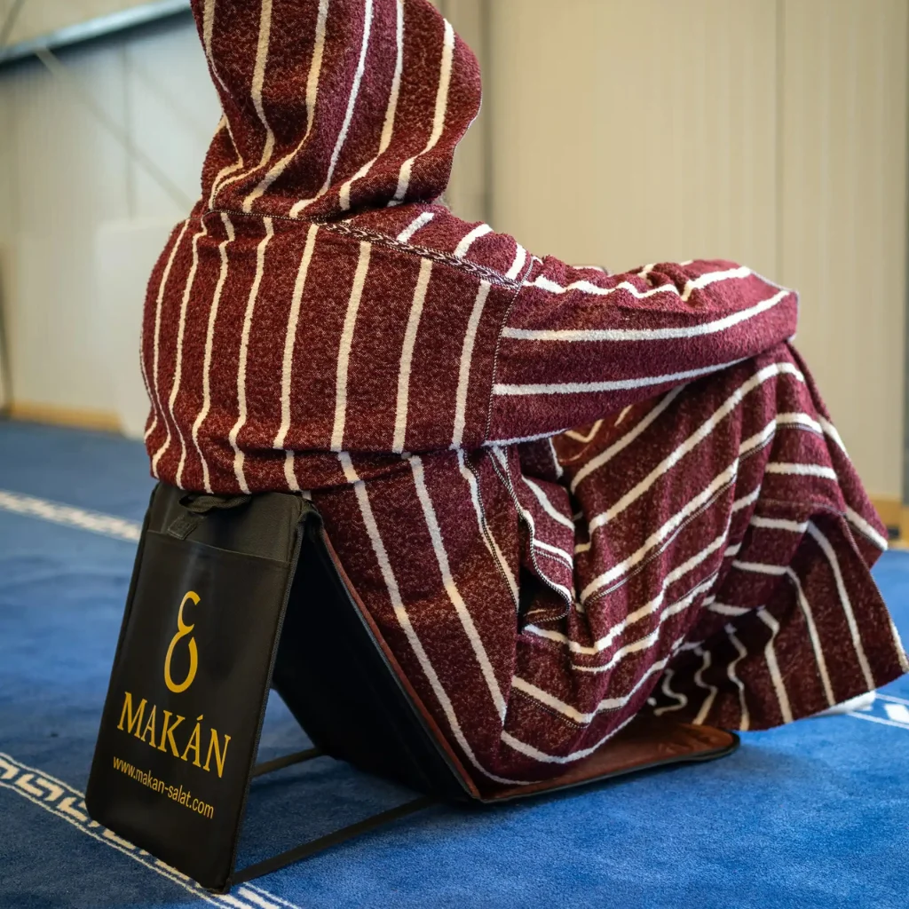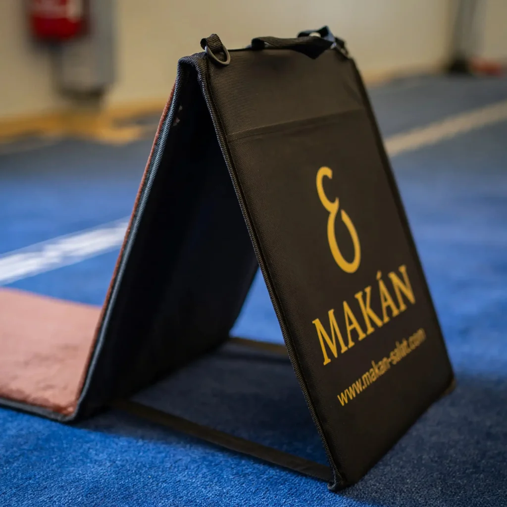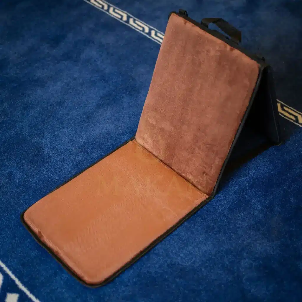 Ursprünglich funktioniert dieser Teppich wie eine kompakte Rückenlehne, ideal für lange Wartezeiten (Warteschlangen, Vorträge, Kurse, Freitagsgebet).