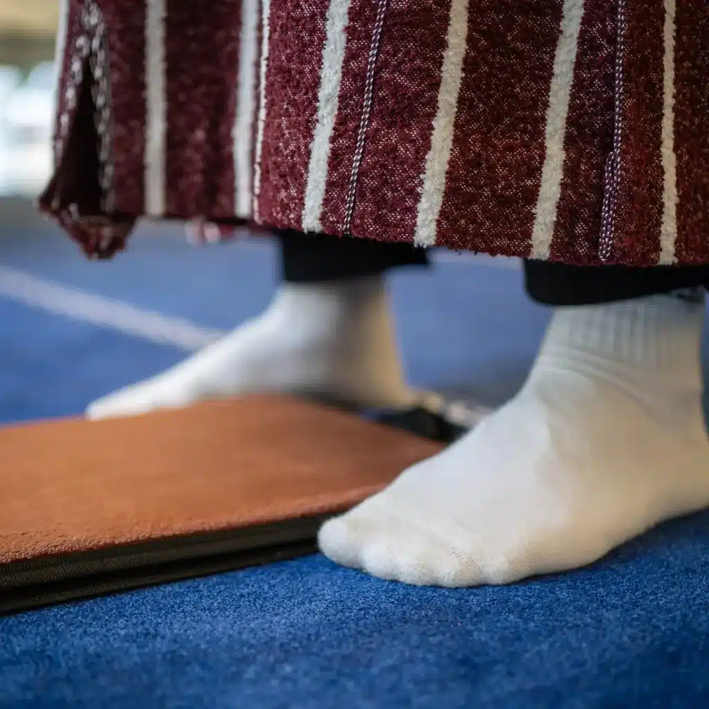 Er kann auch als Markierung dienen, um den Gebetsbereich abzugrenzen und unbeabsichtigte Überschreitungen zu vermeiden.